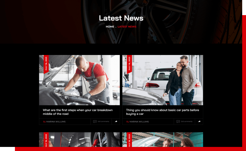 We have provided multiple layouts for car servicing blogs to share knowledge with various clients & users. For blog we provide multiple layout options.